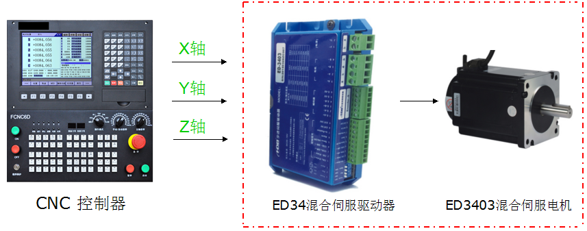 漢德保公司的配置方案為(X/Y/Z):ED34混合伺服驅(qū)動(dòng)器 + EMH3403 混合伺服電機(jī)